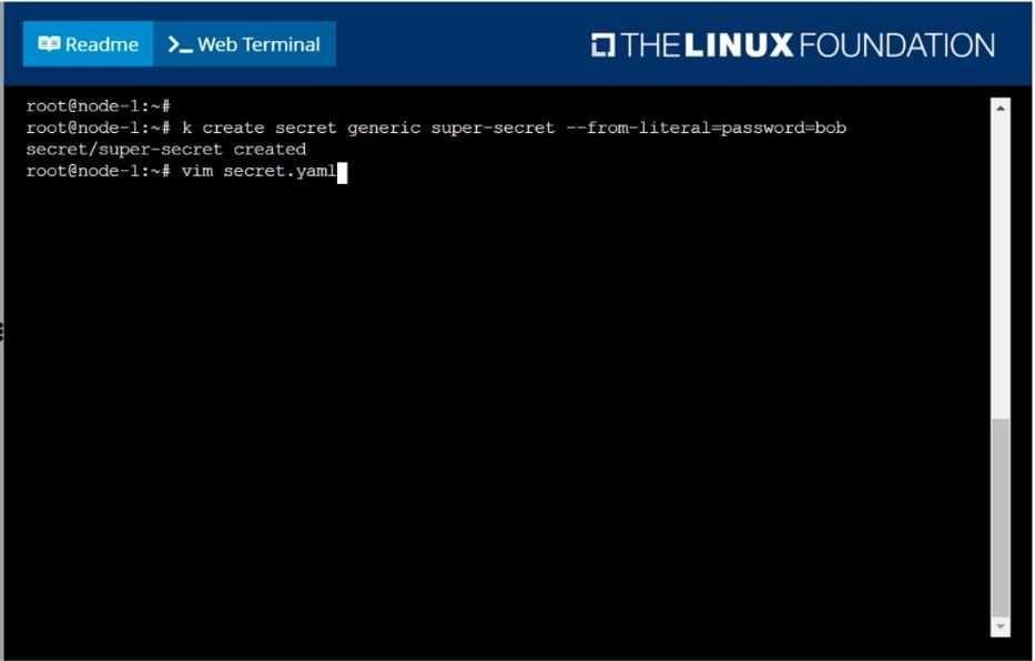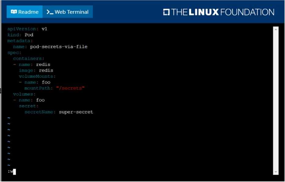 Create a pod named pod-secrets-via-file, using the redis Image, which mounts a secret named super-