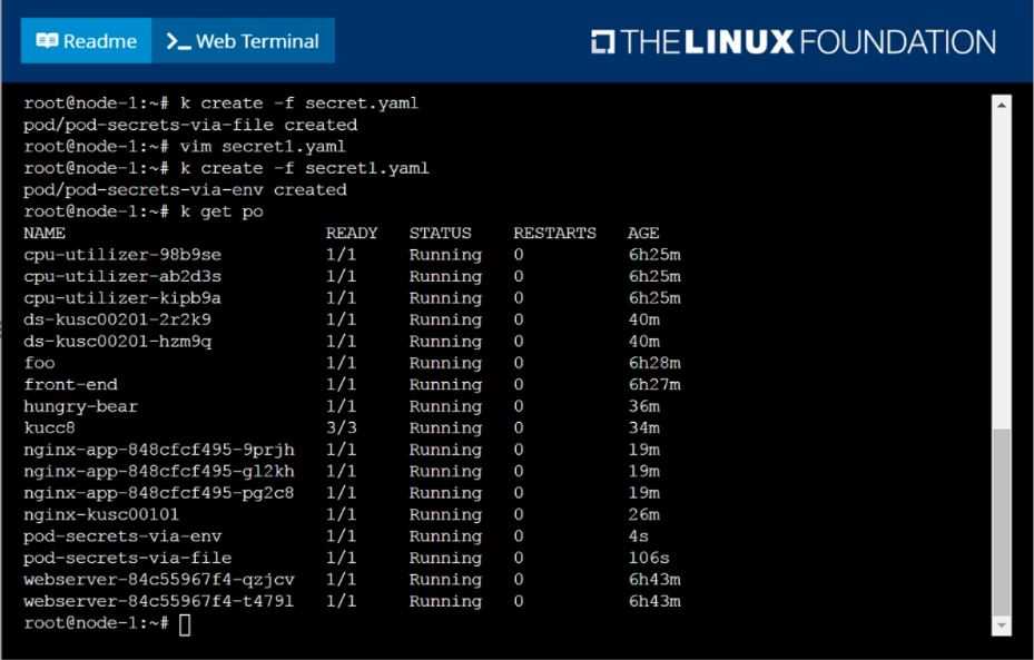 Create a second pod named pod-secrets-via-env, using the redis Image, which exports password as