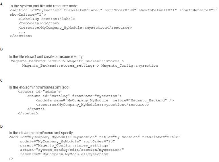 You have created a new section in system configuration under the Catalog tab: How do you restrict an access to the section using Magento ACL?