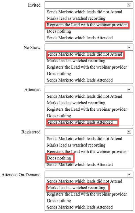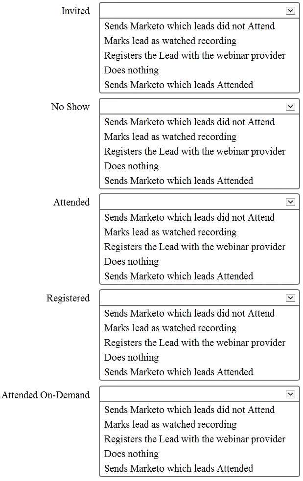 Match each Webinar Program Status with its effect on the webinar provider or Marketo.