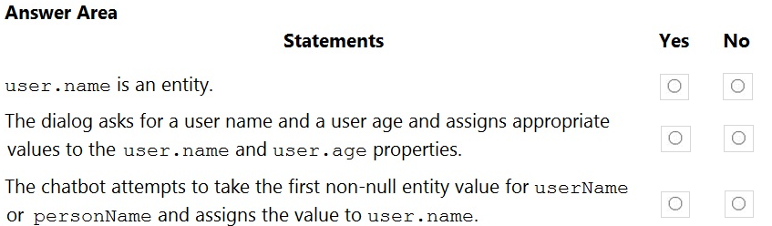 HOTSPOT You are building a chatbot by using the Microsoft Bot Framework Composer.