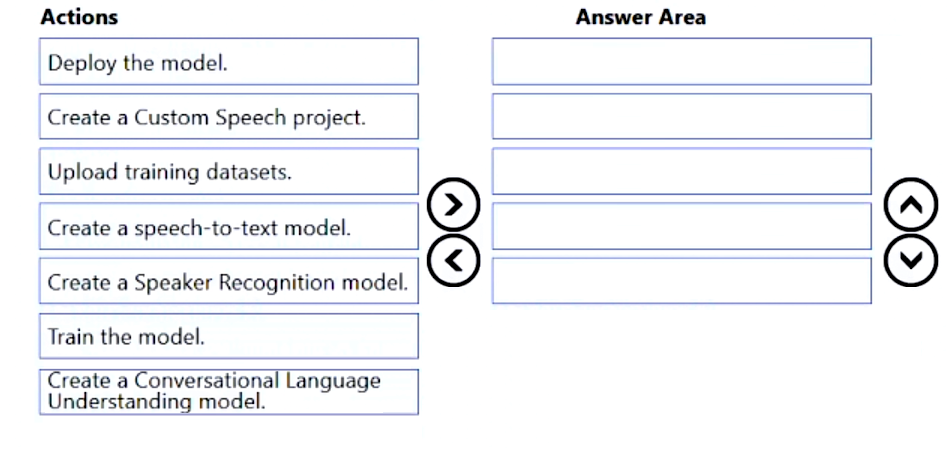 Which five actions should you perform in sequence? To answer, move the appropriate actions from the list of actions to the answer area and arrange them in the correct order.