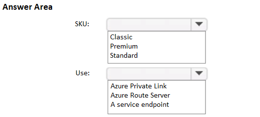 You need to identify which Front Door SKU to configure, and what to use to route the traffic to the load balancers. The solution must minimize costs.