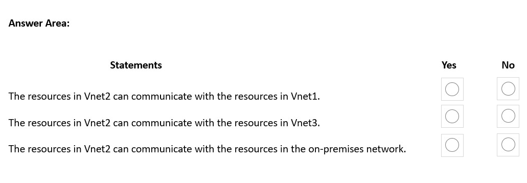 You have a peering connection between Vnet1 and Vnet2 as shown in the Peering-Vnet1-Vnet2 exhibit.
