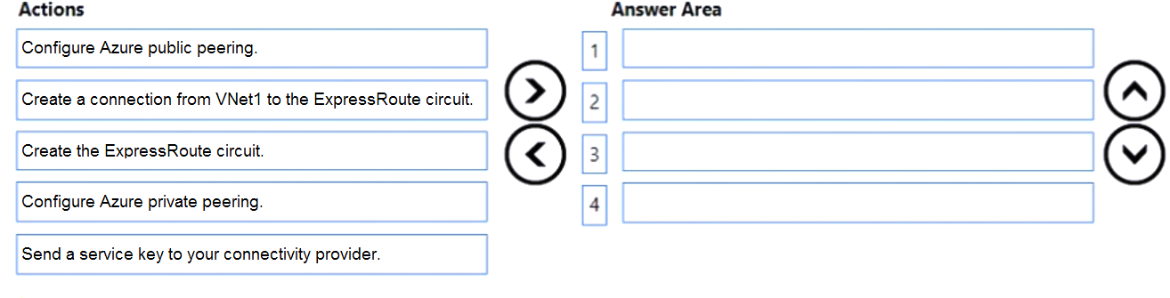 Which four actions should you perform in sequence? To answer, move the appropriate actions from the list of actions to the answer area and arrange them in the correct order.