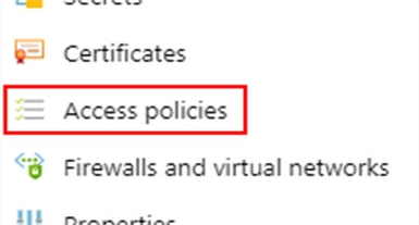 1. From the Azure portal, go to the Azure Key Vault instance that you plan to use to host your encryption keys. Select Access Policies from the left menu: