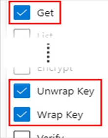 3. Under the Key permissions drop-down menu, select Get, Unwrap Key, and Wrap Key permissions: