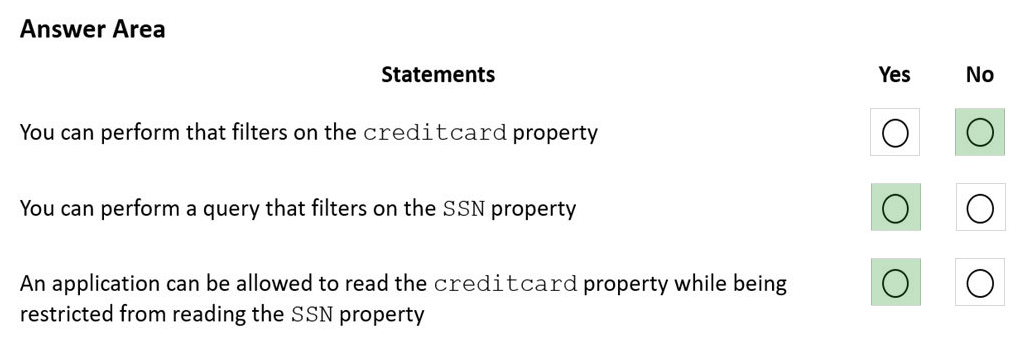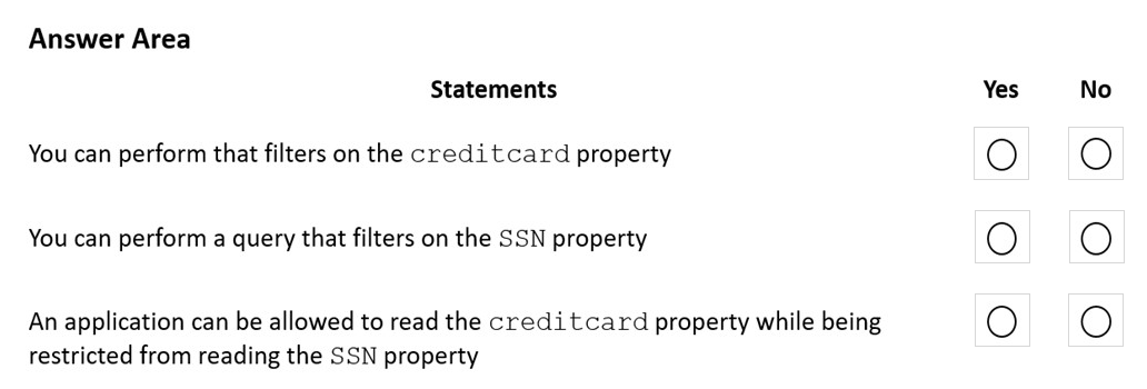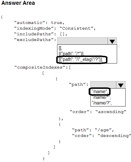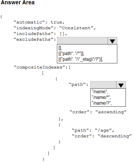 How should you define the indexing policy? To answer, select the appropriate options in the answer area.