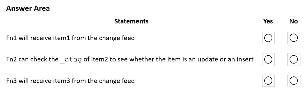 HOTSPOT You have a container named container1 in an Azure Cosmos DB Core (SQL) API account named account1.