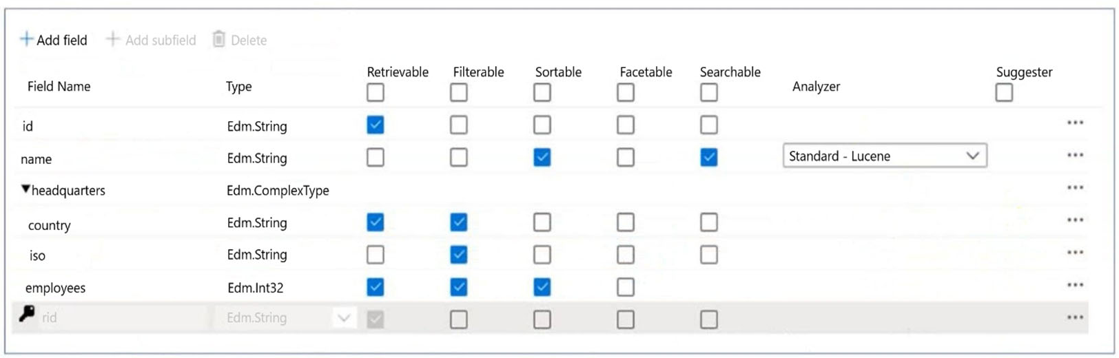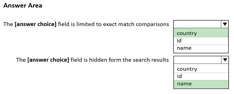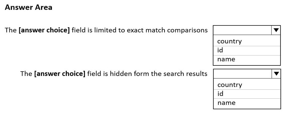HOTSPOT You configure Azure Cognitive Search to index a container in an Azure Cosmos DB Core (SQL) API account as shown in the following exhibit.