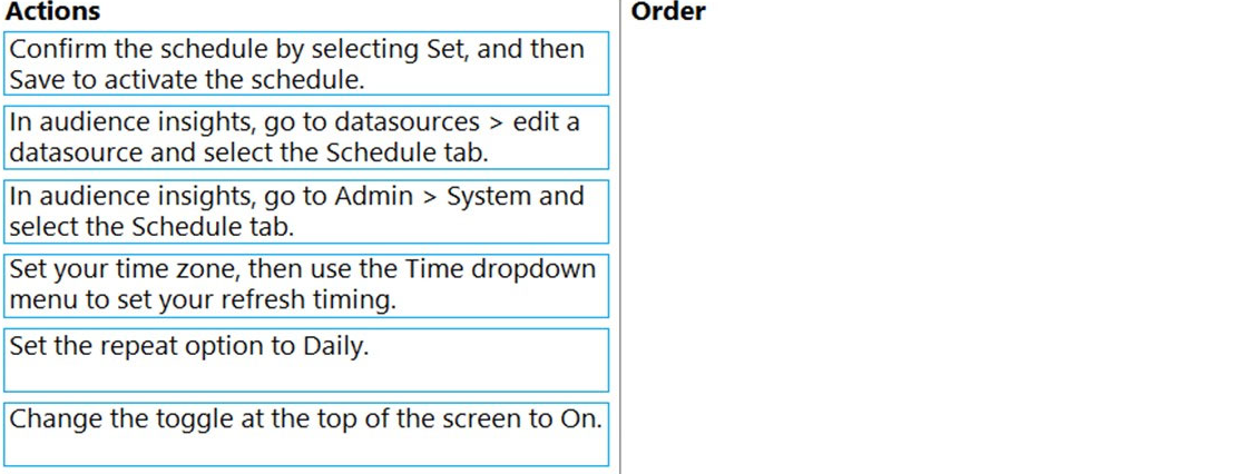 DRAG DROP As a Customer Data Platform Specialist, you set up audience insights as the new Customer Data Platform.
