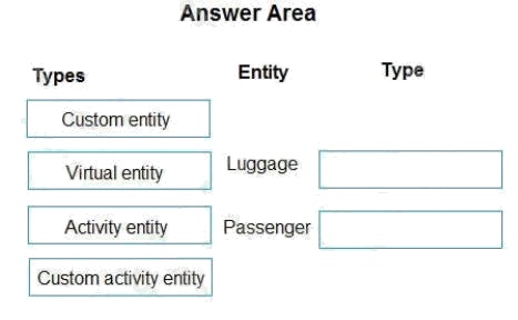 What should you recommend? To answer, drag the appropriate types to the correct entities. Each type must be used once,