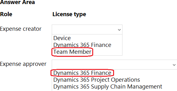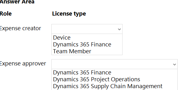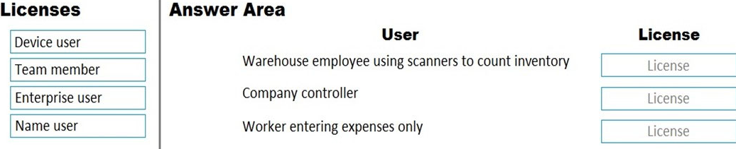Which license types are required? To answer, select the appropriate options in the answer area.