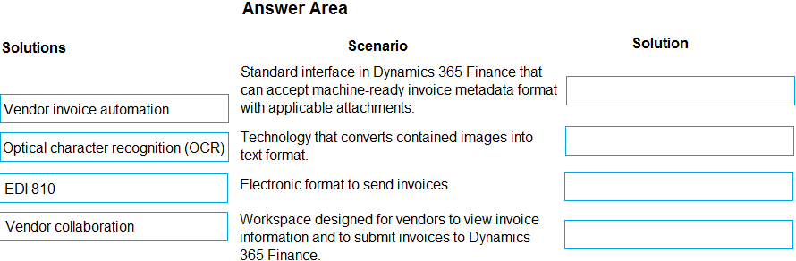 DRAG DROP A company uses Dynamics 365 Finance.
