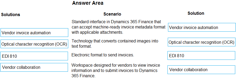 https://docs.microsoft.com/en-us/dynamics365/finance/accounts-payable/vendor-invoice-automation https://docs.microsoft.com/en-us/learn/modules/configure-manage-vendor-collaboration-dyn365-supply-chain-mgmt/
