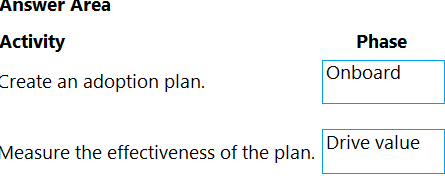 You need to create an adoption plan and measure the effectiveness of the plan.