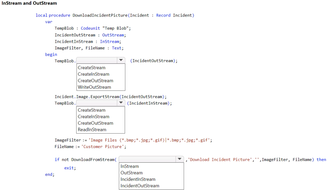 How should you complete the code segment? To answer, select the appropriate options in the answer area.