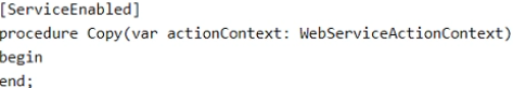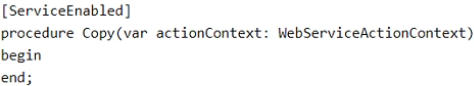 The IT department creates a custom API for exposing the custom Issue table. The API provides an action for copying an issue to a new table. The action is defined as follows: