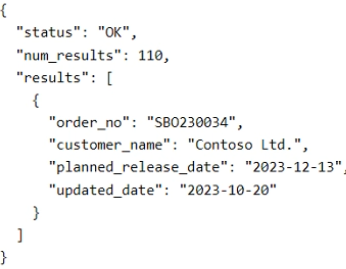 Contoso, Ltd. must connect Business Central to the external API provided by the business partner. This will be used for the partner to send the details of new subcontracting orders to fulfill the sales demand, and for receiving the planned release date of each order sent. The integration requirements are as follows: