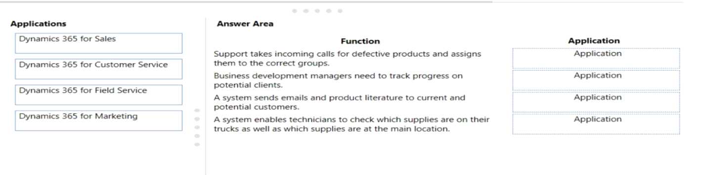 To answer, drag the appropriate applications to the correct functions. Each application may be used
