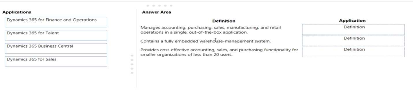 To answer, drag the appropriate application from the column on the left to its definition on the right.