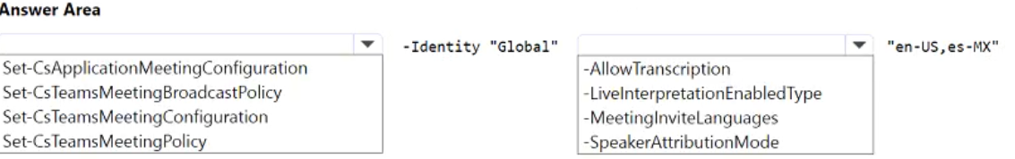 How should you complete the PowerShell command? To answer, select the appropriate options in the answer area.