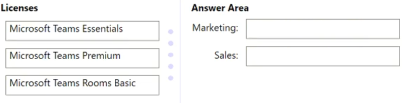 What should you recommend for each department? To answer, drag the appropriate licenses to the correct departments. Each license may be used once, more than once, or not at all. You may need to drag the split bar between panes or scroll to view content.