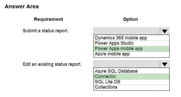 Which Power Platform component should you use for each feature? To answer, select the appropriate options in the answer