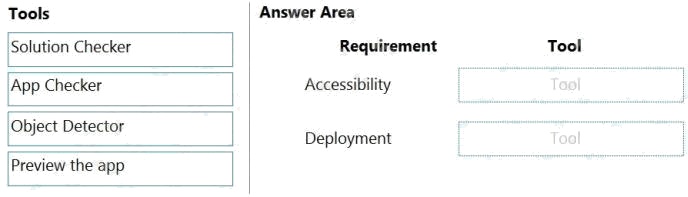 Which tools should you use? To answer, select the appropriate tool in the answer area.