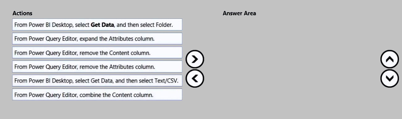 DRAG DROP You have a folder that contains 100 CSV files.