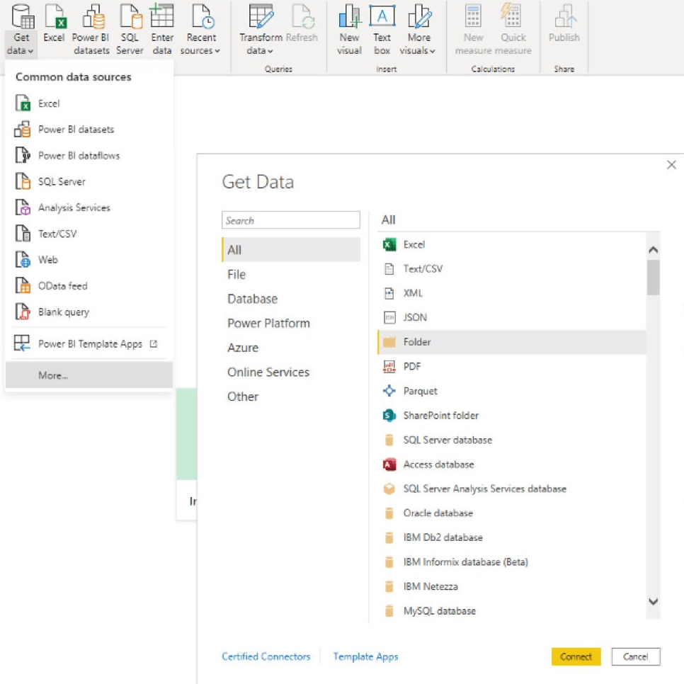 Step 1: From Power BI Desktop, Select Get Data, and then Select Folder.