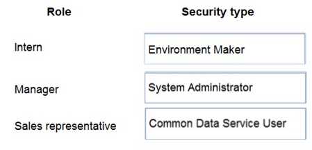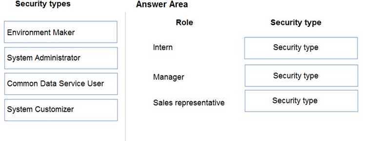 Which security roles should you use? To answer, drag the appropriate security types to the correct