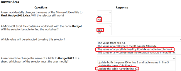 HOTSPOT You are creating a custom selector for a Microsoft Excel workbook by using a Power Automate.