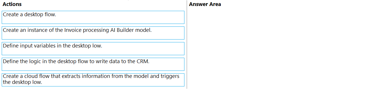 In which order should you perform the actions? To answer, move all actions from the list of actions to the answer area and arrange them in the correct order.