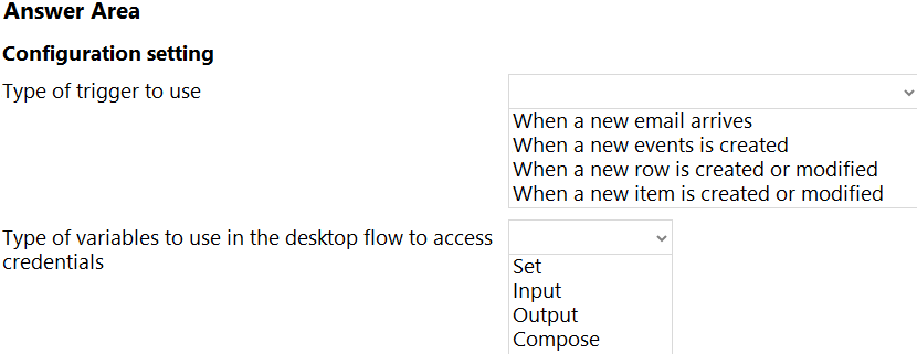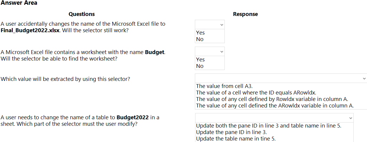 HOTSPOT You are creating a custom selector for a Microsoft Excel workbook by using a Power Automate.
