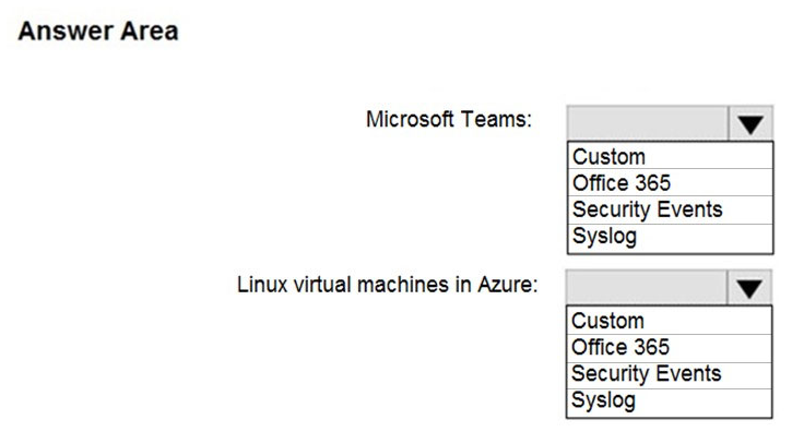 You need to implement connectors in Azure Sentinel to monitor Microsoft Teams and Linux virtual machines in Azure. The solution must minimize administrative effort.