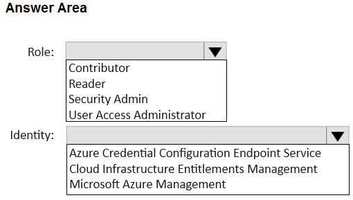 Which role should you assign and to which identity should you assign the role? To answer, select the appropriate options in the answer area.