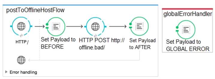 Refer to the exhibits. A Mule application is configured to use the globalErrorHandler exception