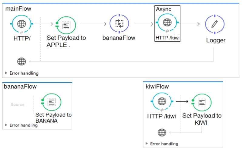 Refer to the exhibits. What is the expected payload at the end of mainFlow?