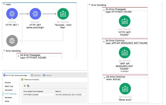 3) The On Error Propagate error Handler handles the error. In this case ,HTTP:NOT_FOUND error is