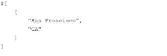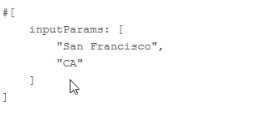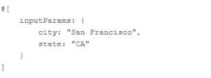 What expression correctly specifies input parameters to pass the city and state values to the SQL