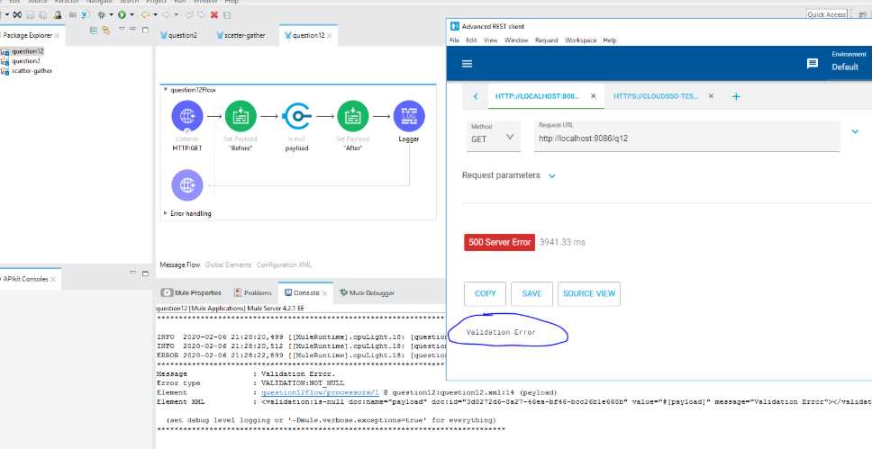 3) The validator component in the Try scope creates an Error Object because the payload is not null.
