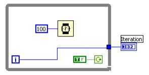 The loop w ill execute once and the iteration terminal, , will output a value of zero