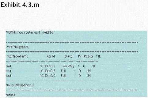 The router R6 interface is in a multi-access segment. It is neither the DR nor the BDR for the segment; however, this command does not indicate whether 10.10.10.3 or 10.10.10.5 is the DR or BDR.