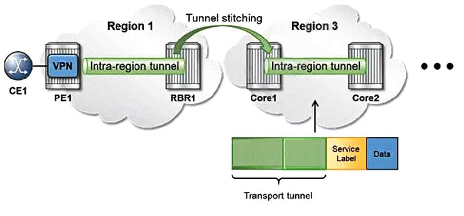 Either RSVP, LDP, or segment routing tunnels need to be established between regions.
