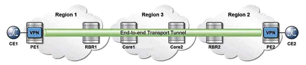 Either RSVP, LDP, or segment routing tunnels need to be established within each region.