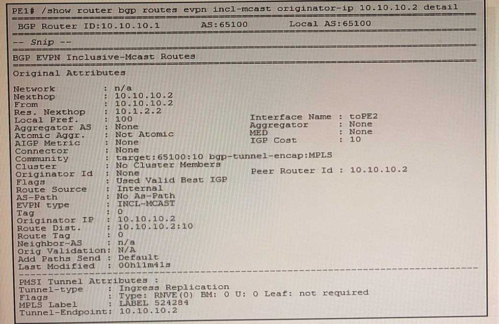 PE1 uses this BGP update to build the flooding list of the associated service. The update contains an