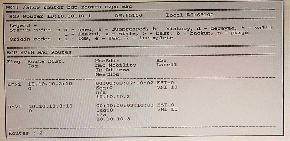PE1 does not use VXLAN tunnels to reach neighbors 10.10.10.2 and 10.10.10.3. PE1 uses MPLS