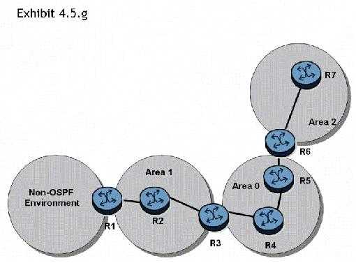 Click the exhibit button. In the topology shown, router R1 is an ASBR configured to export external routes to OSPF. Assuming that there are no stub networks, which of the following statements regarding type 4 LSA generation is true?