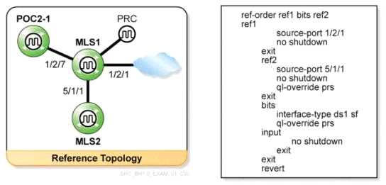 Click on the exhibit. Consider the topology and MLS1 configuration shown, and given the following conditions: • MLS1 delivers the PRC traceable clock to the network • Reference 1 receives Quality Level (QL) - ST3 • Reference 2 receives QL - DUS • BITS sets QL-STU Which quality level will MLS1 deliver to POC2-1 on its Synchronous Ethernet (SyncE) port 1/2/7?
